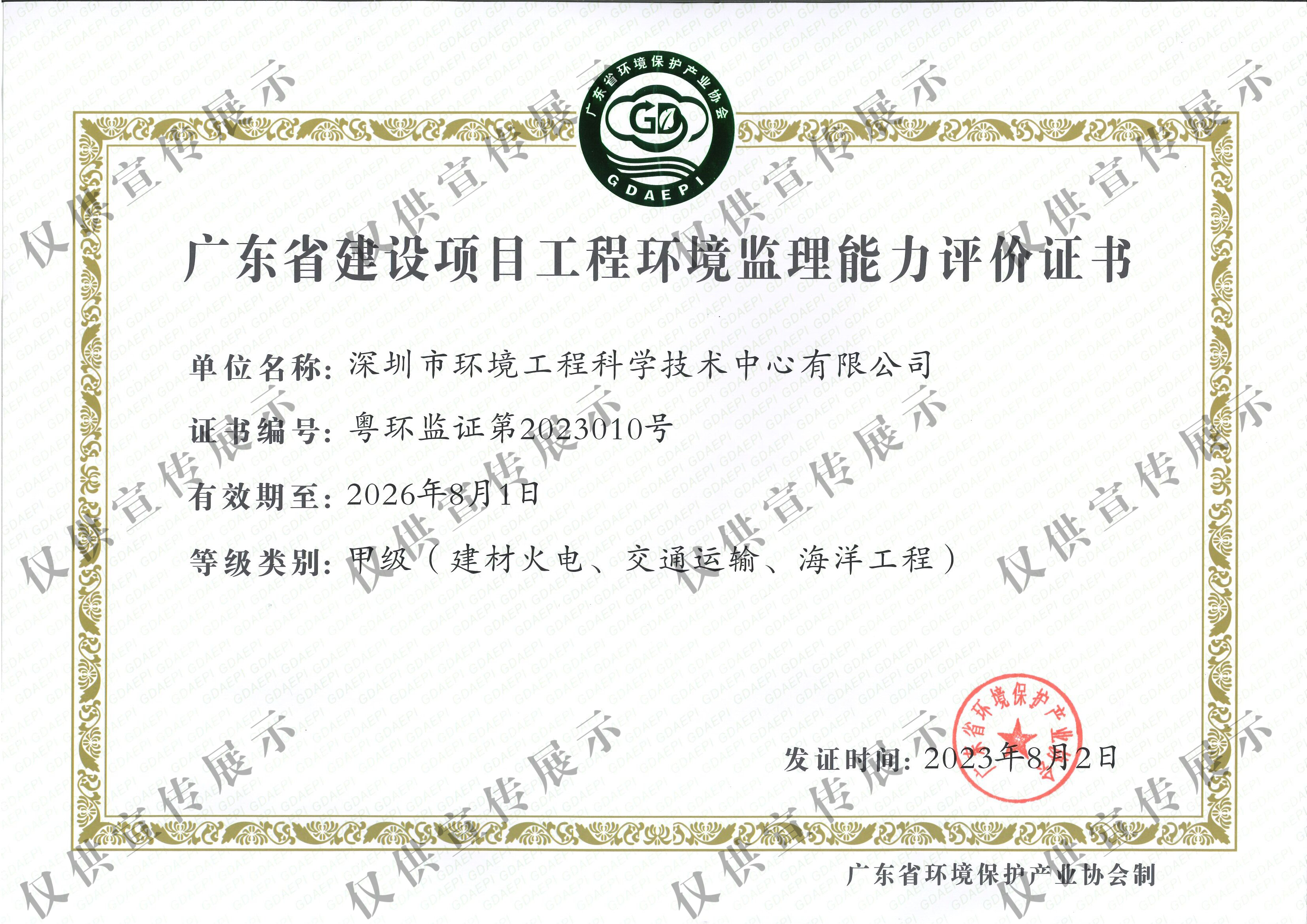 廣東省建設(shè)項目工程環(huán)境監(jiān)理能力評價證書